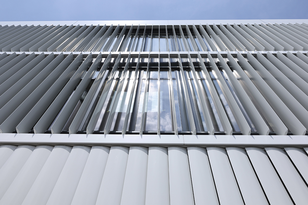 Die Lamellen aus extrudiertem Aluminium fügen sich in verschiedenen Größen harmonisch in jede Architektur ein.